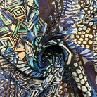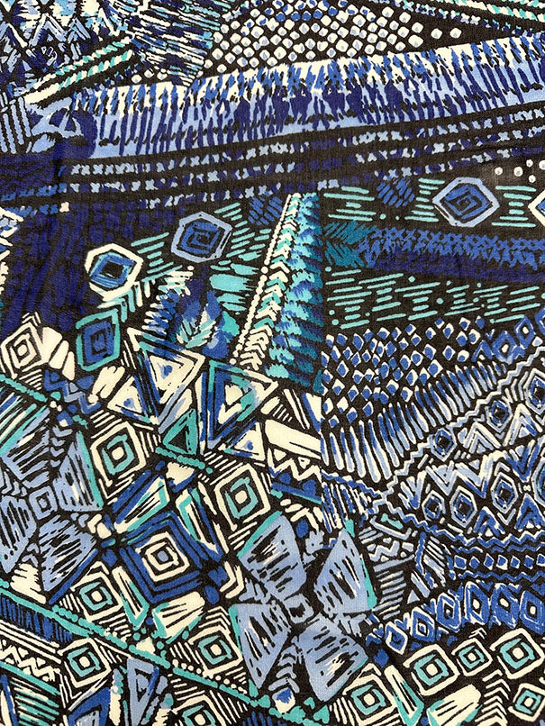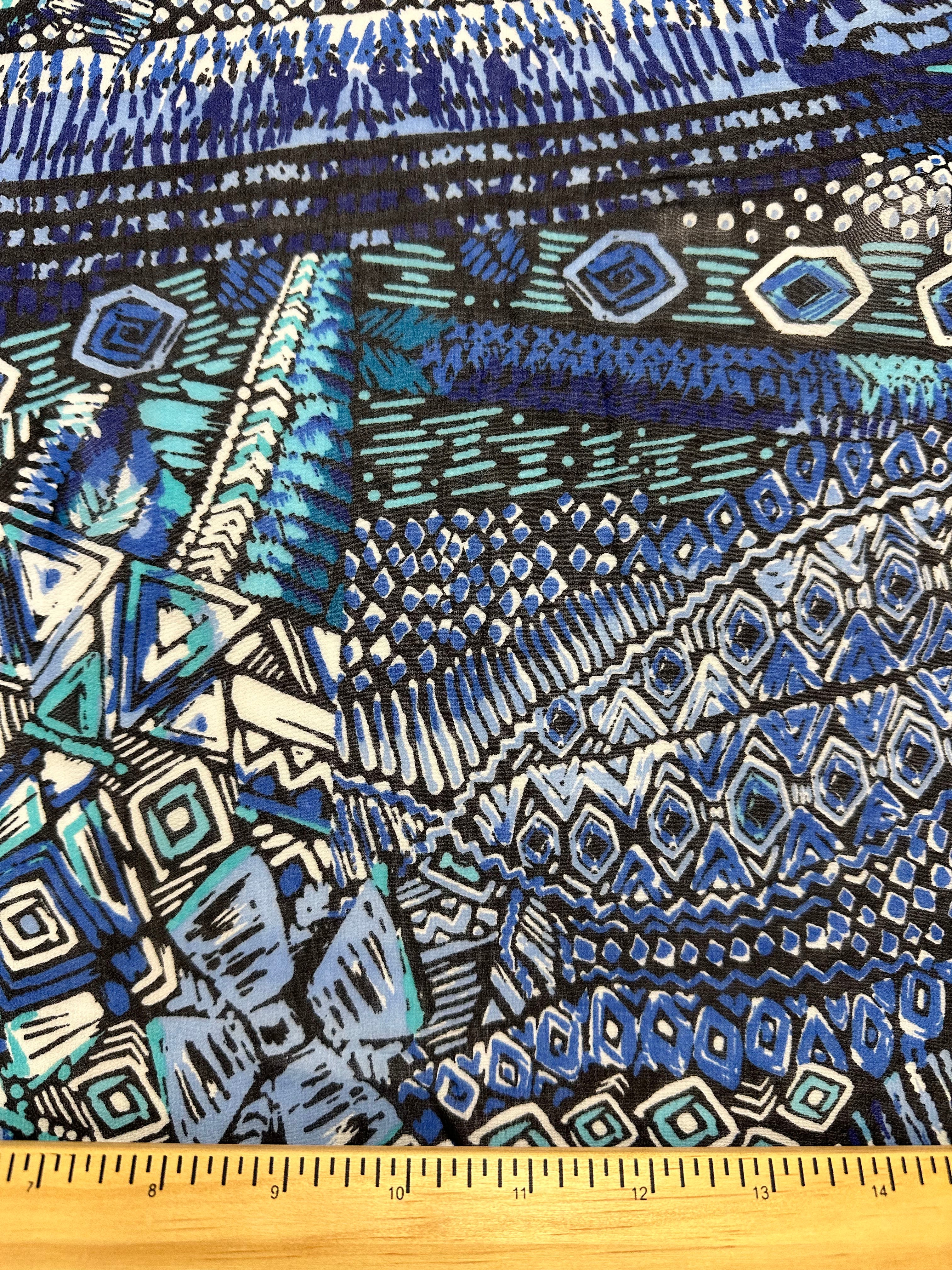 -Blue, Turquoise, Black, & White Multi Aztec Look Print Poly Sheer Chiffon Fabric