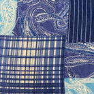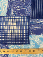 -Shades of Blue, White, & Turquoise Paisley & Stripe Patchwork Print Sheer Chiffon Fabric