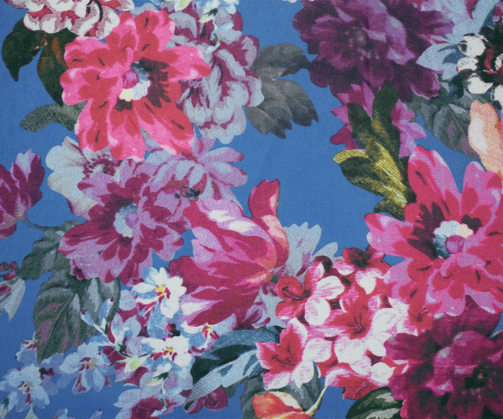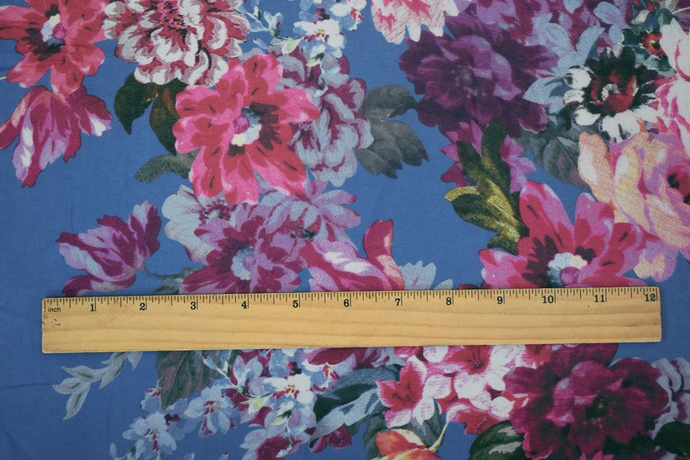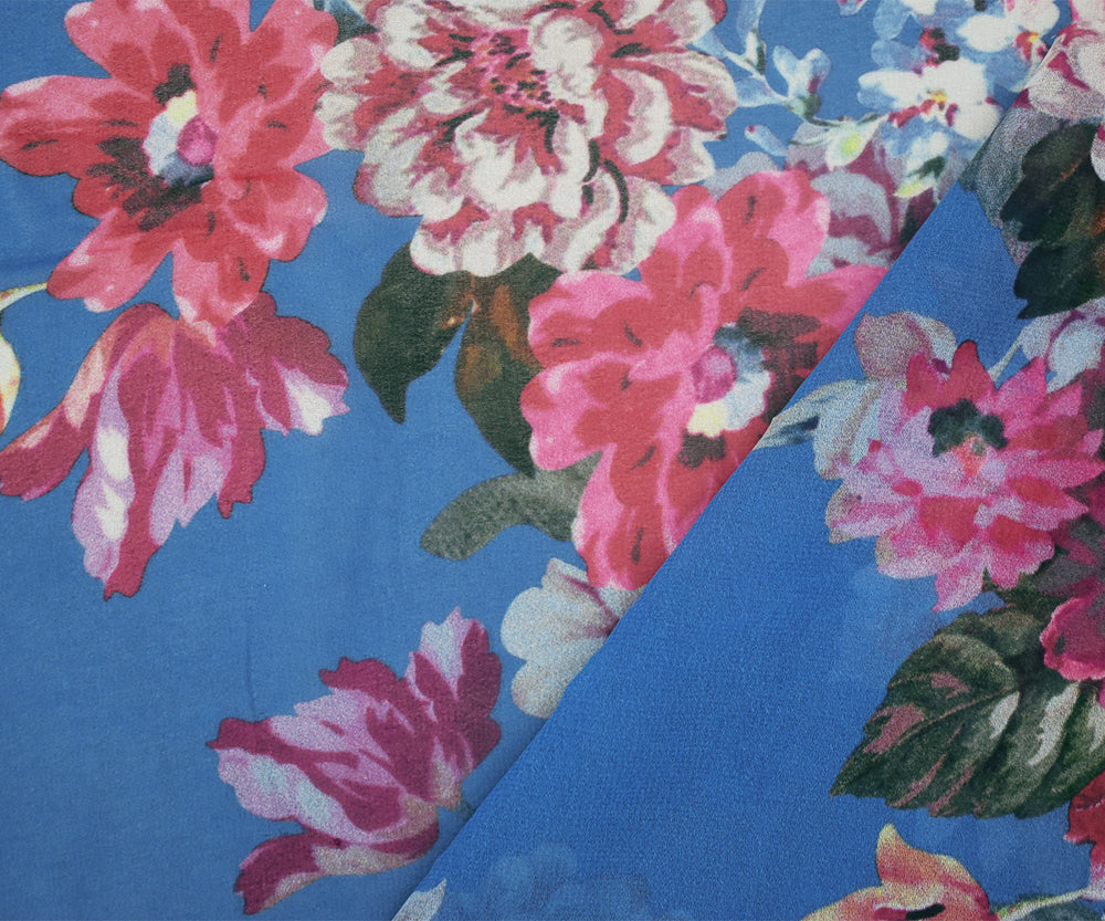 Blue-Pink-Multi Floral Printed Poly Chiffon Woven Fabric
