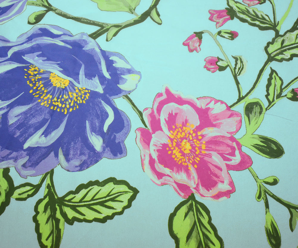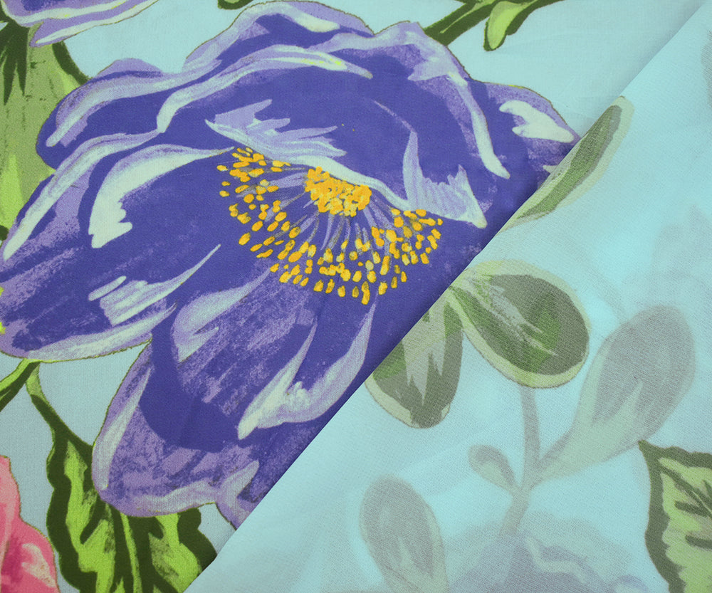 Blue-Pink-Multi Floral Printed Poly Chiffon Woven Fabric