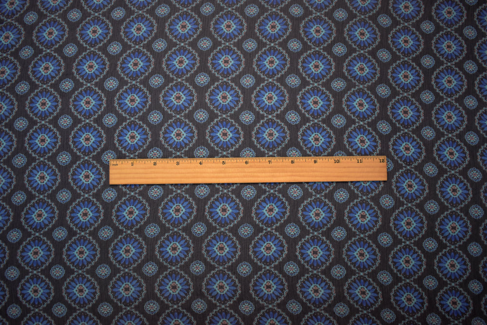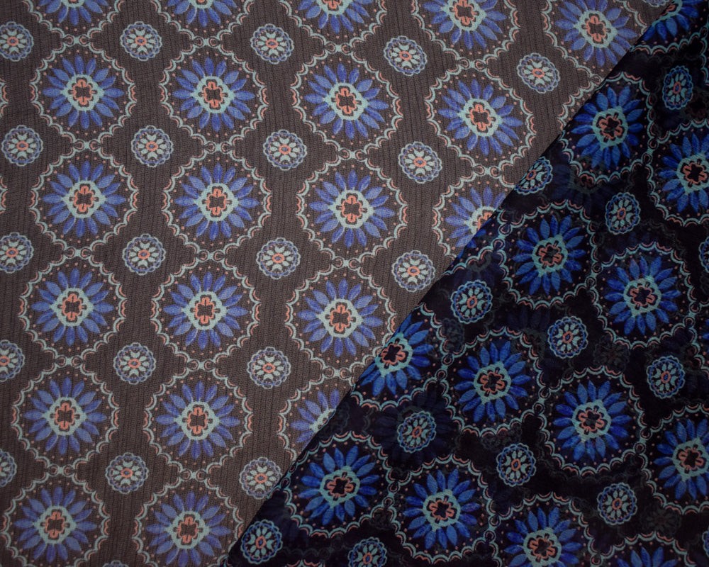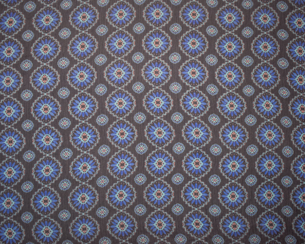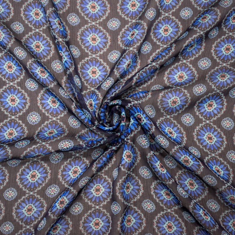-Blue-Pink Poly Abstract Floral Printed Crinkle Yoryu Chiffon Woven Fabric