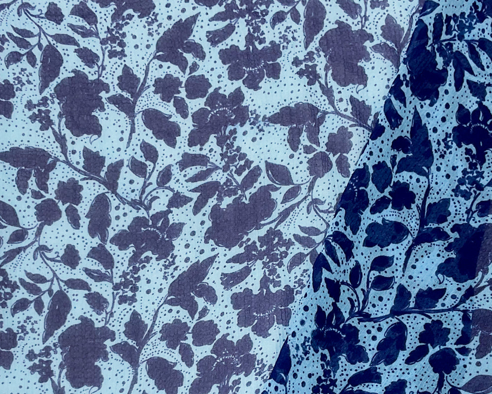Blue Poly Floral Printed Yoryu Chiffon Woven Fabric