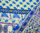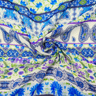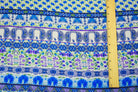 Blue-Purple-Multi Poly Border Floral Printed Chiffon Woven Fabric
