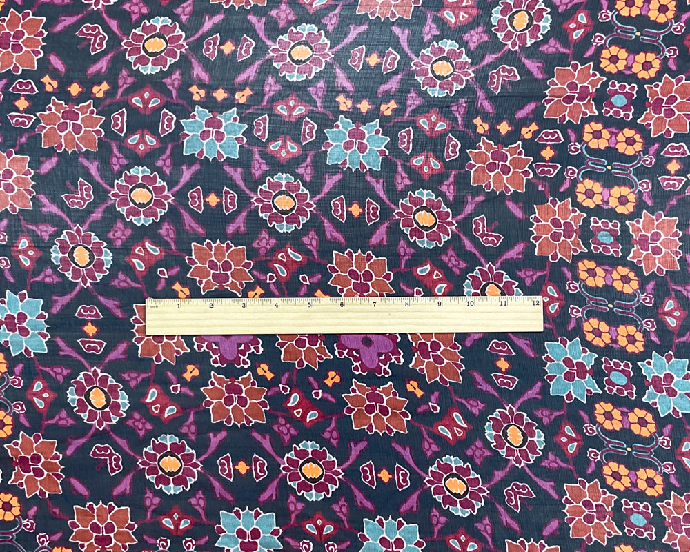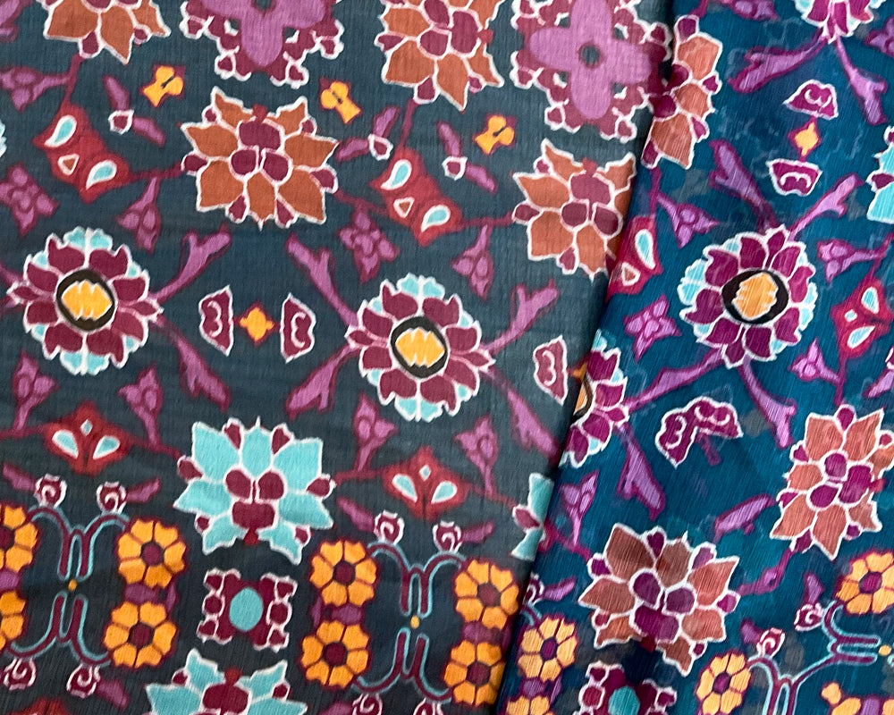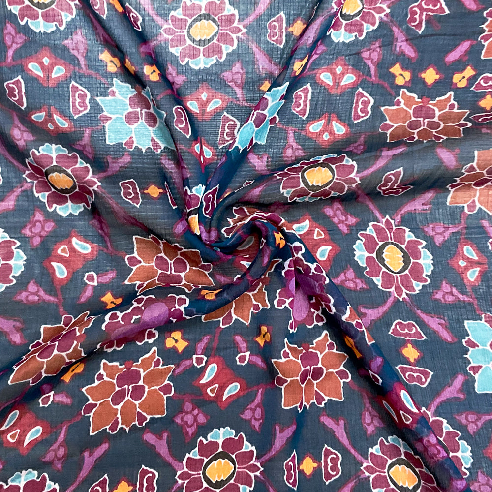 Blue-Red-Multi Poly Floral Printed Crinkle Yoryu Chiffon Woven Fabric