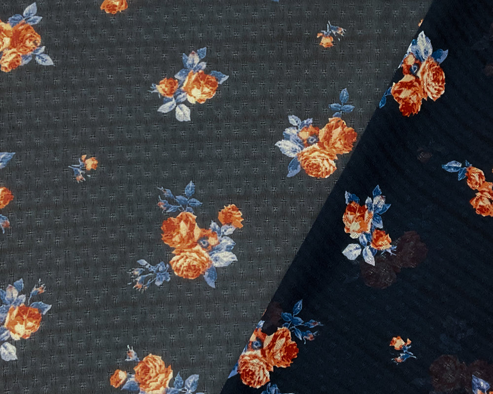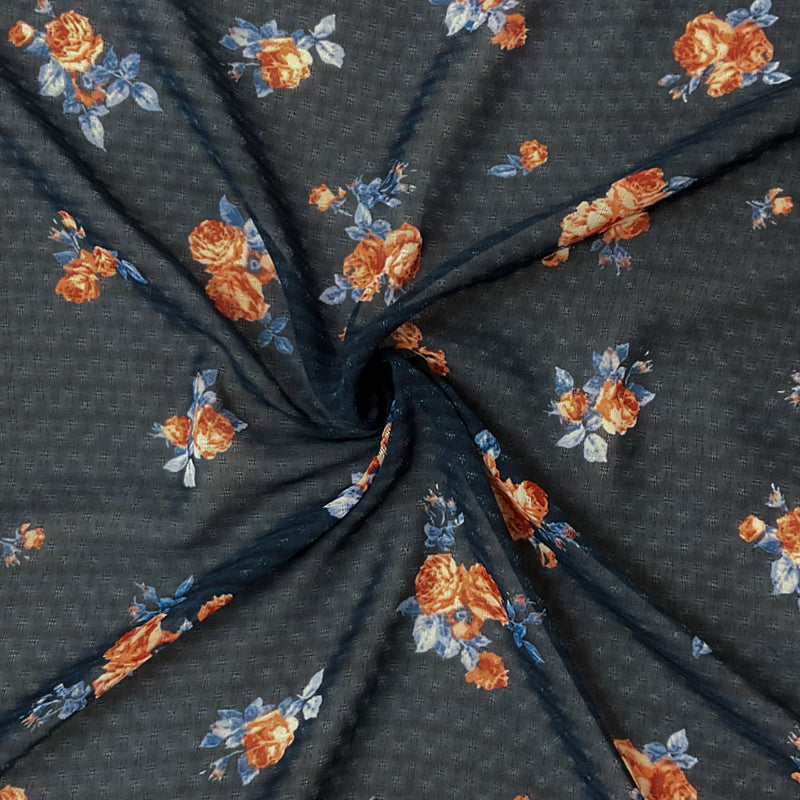 Blue-Red-Multi Poly Floral Printed Dobby Chiffon Woven Fabric