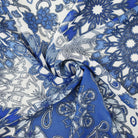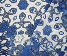 Blue-White Floral Medallion Printed Poly Chiffon Woven Fabric