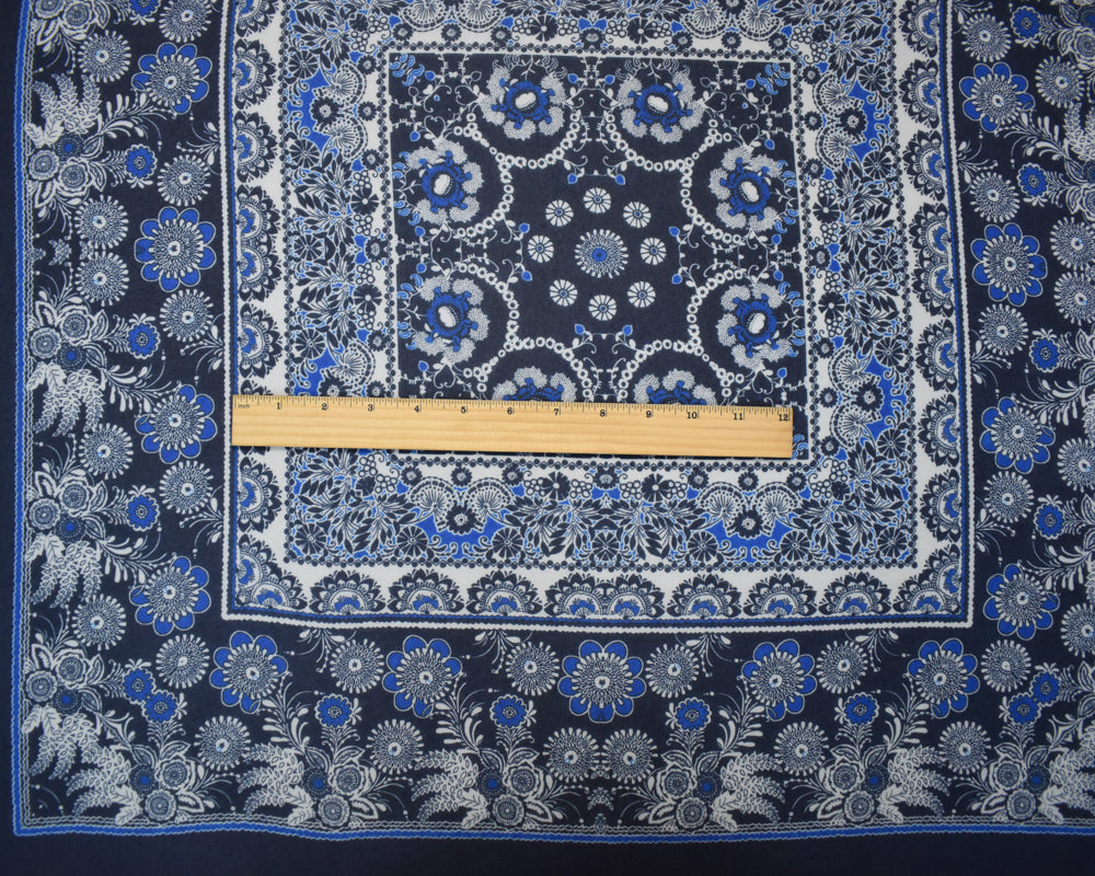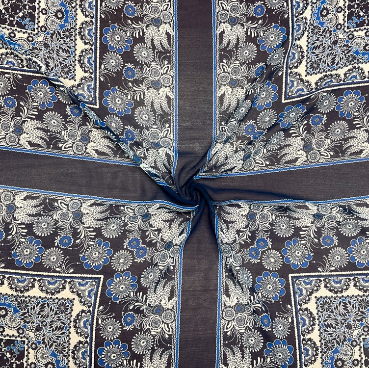 -Blue-White Floral Moroccan Bandana PANEL Printed Chiffon Woven Fabric