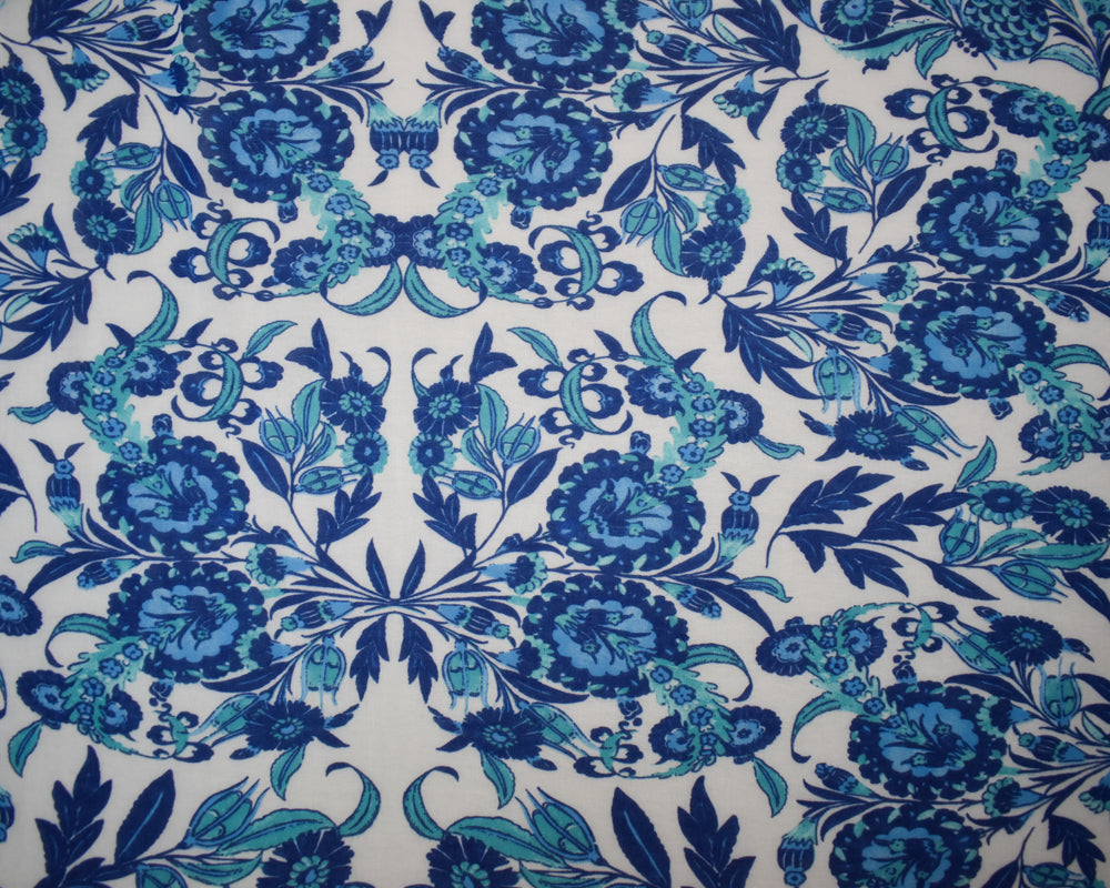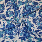 Blue-White-Multi Poly Floral Paisley Border Print Chiffon Woven Fabric