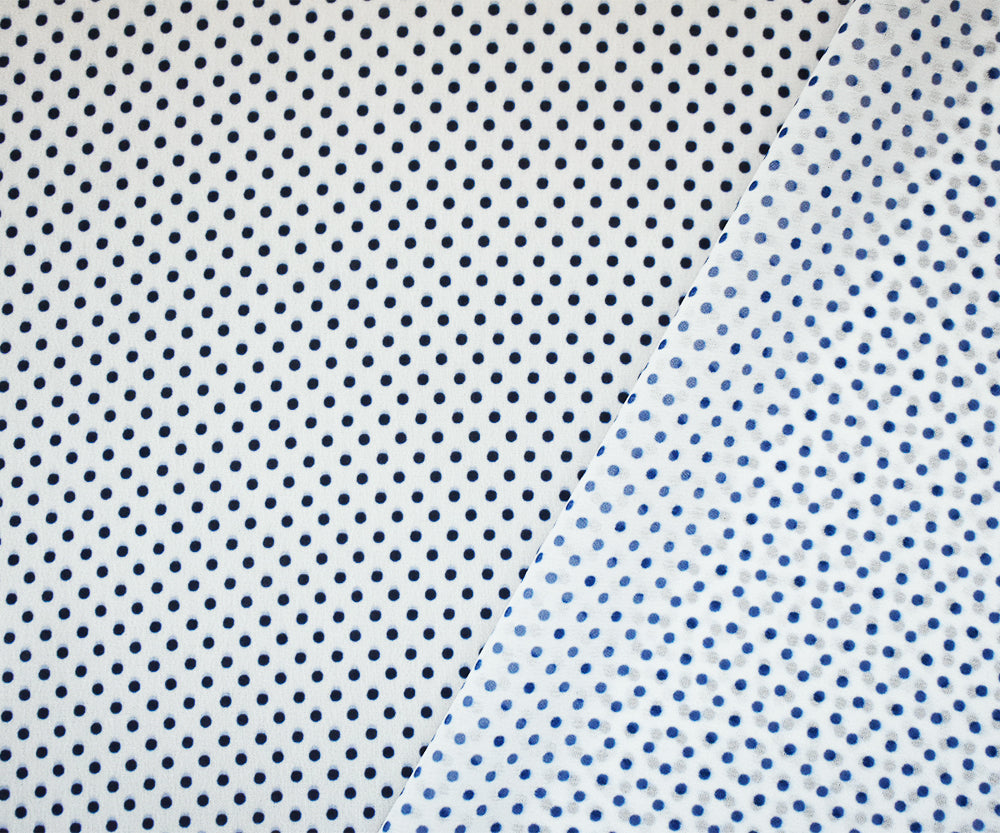 -100% polyester chiffon printed with polka dots. Made in Japan.
