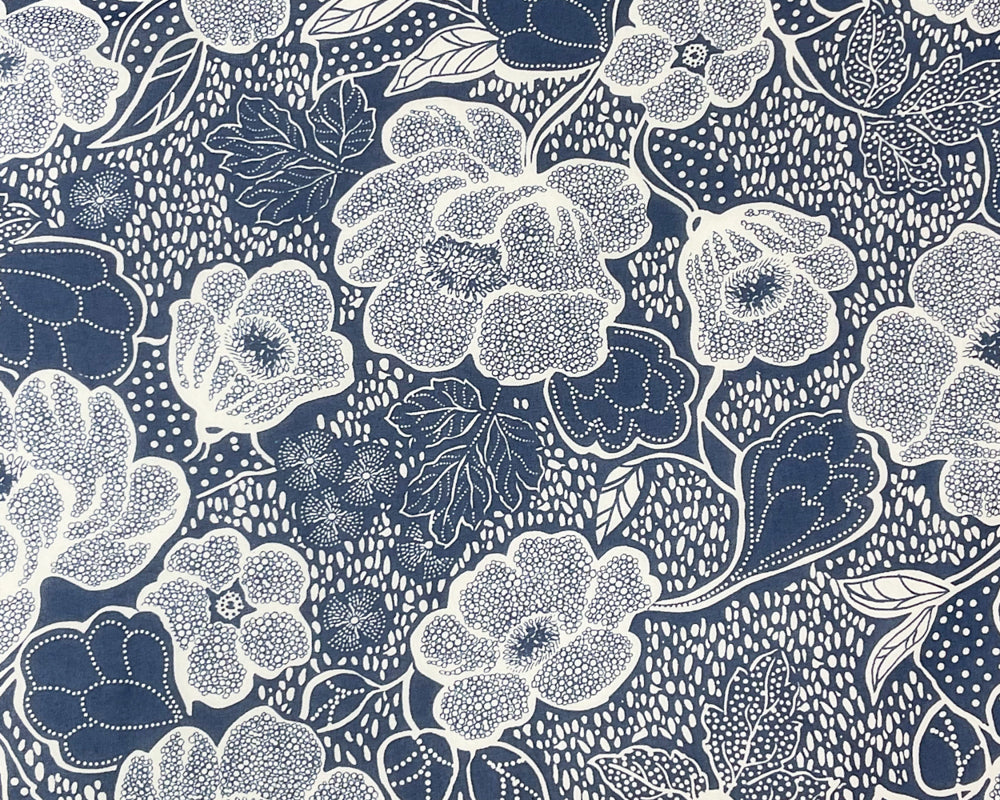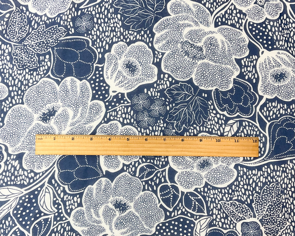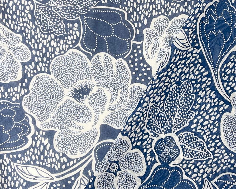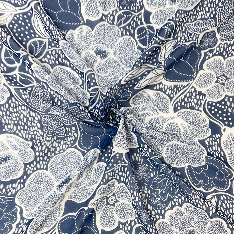 -Blue-White Poly Floral Printed Chiffon Woven Fabric