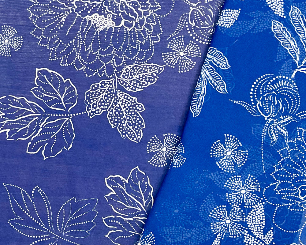 Blue-White Poly Floral Printed Chiffon Woven Fabric
