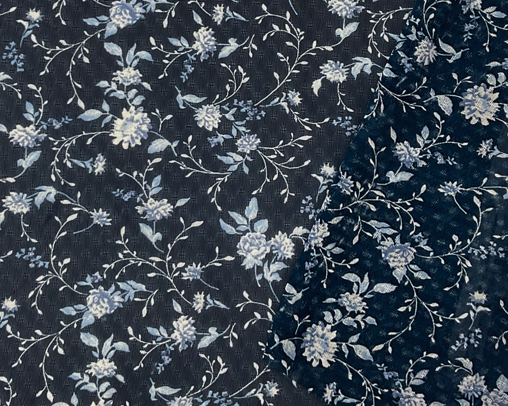 Blue-White Poly Floral Printed Dobby Chiffon Woven Fabric
