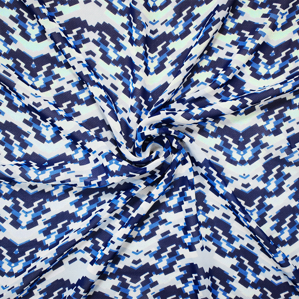 -100% polyester chiffon woven fabric printed with a pixelated chevron pattern