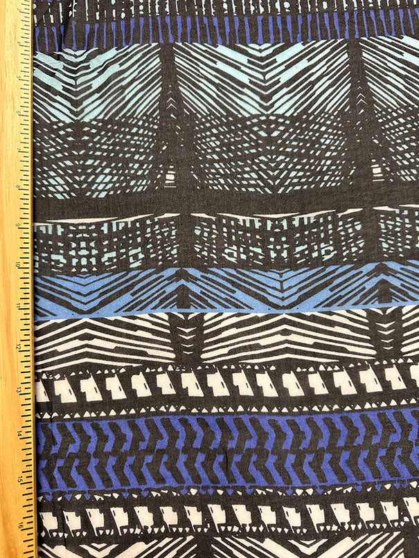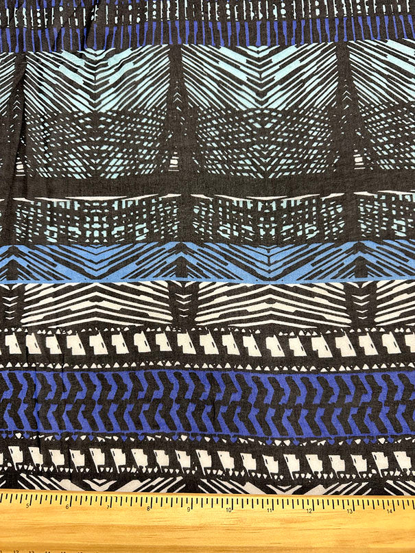 -Blue, Black, White, & Aqua Zebra & Uneven Stripe Horizontal Print Sheer Chiffon Fabric