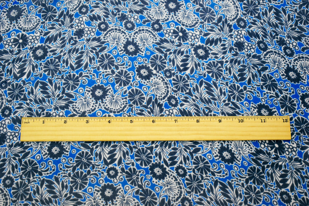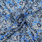 Bright Blue-Navy-White Poly Floral Printed Chiffon Woven Fabric