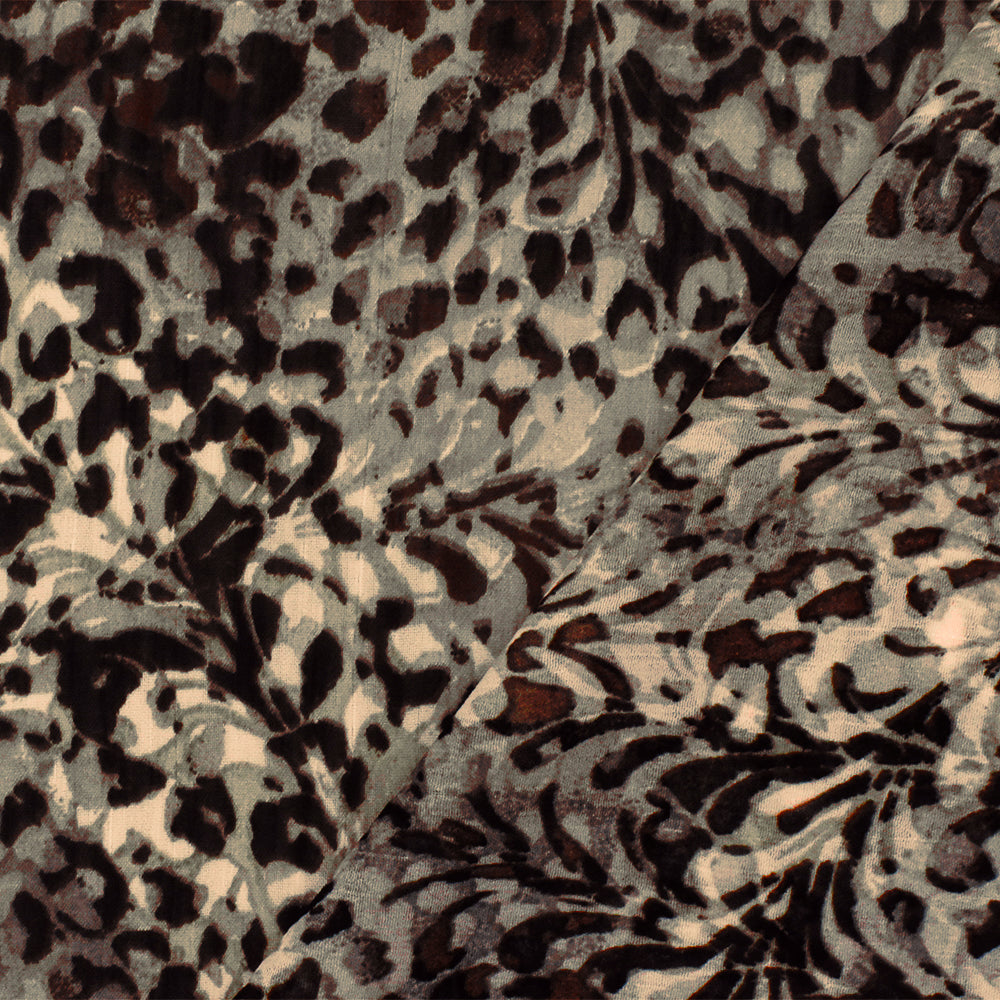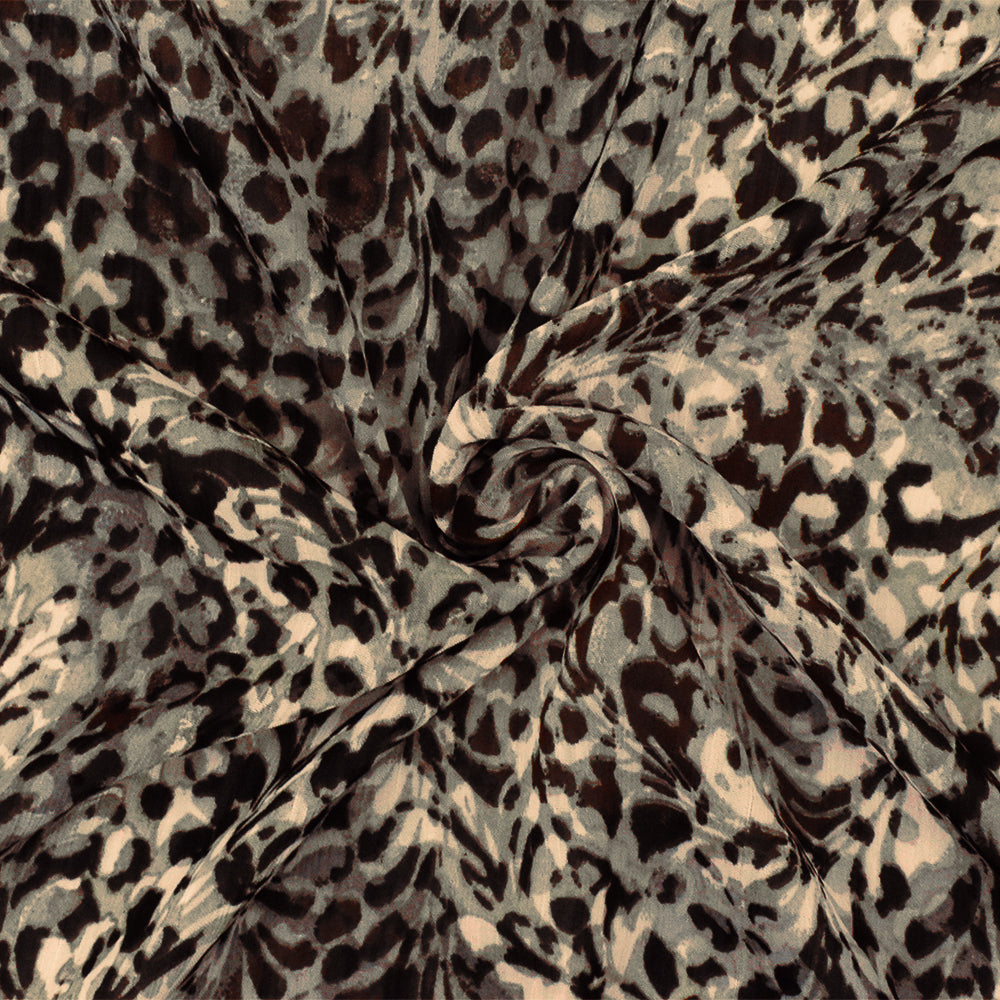 Brown-Gray-Multi Abstract Printed Poly Chiffon Woven Fabric