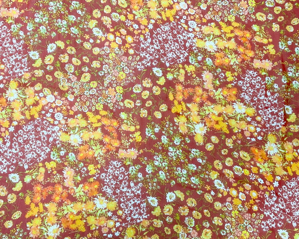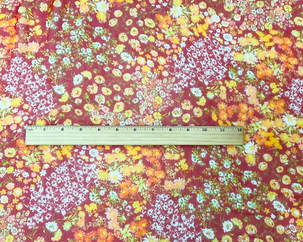 -Brown-Yellow-Multi Poly Floral Printed Crinkle Yoryu Chiffon Woven Fabric