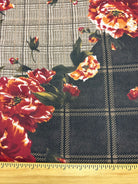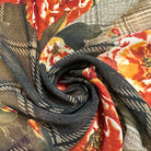 Brown Plaid Floral Print Poly Chiffon Fabric