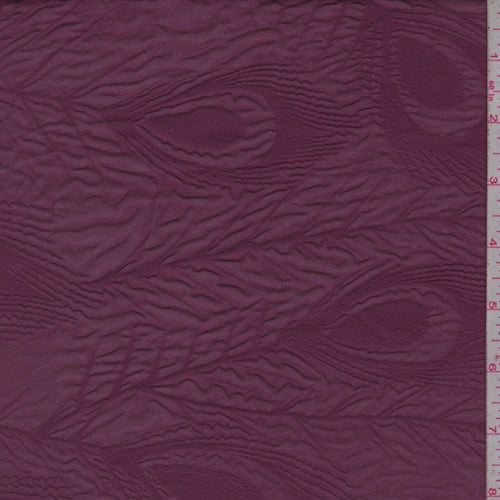 Burgundy Peacock Feather Embossed Chiffon Fabric