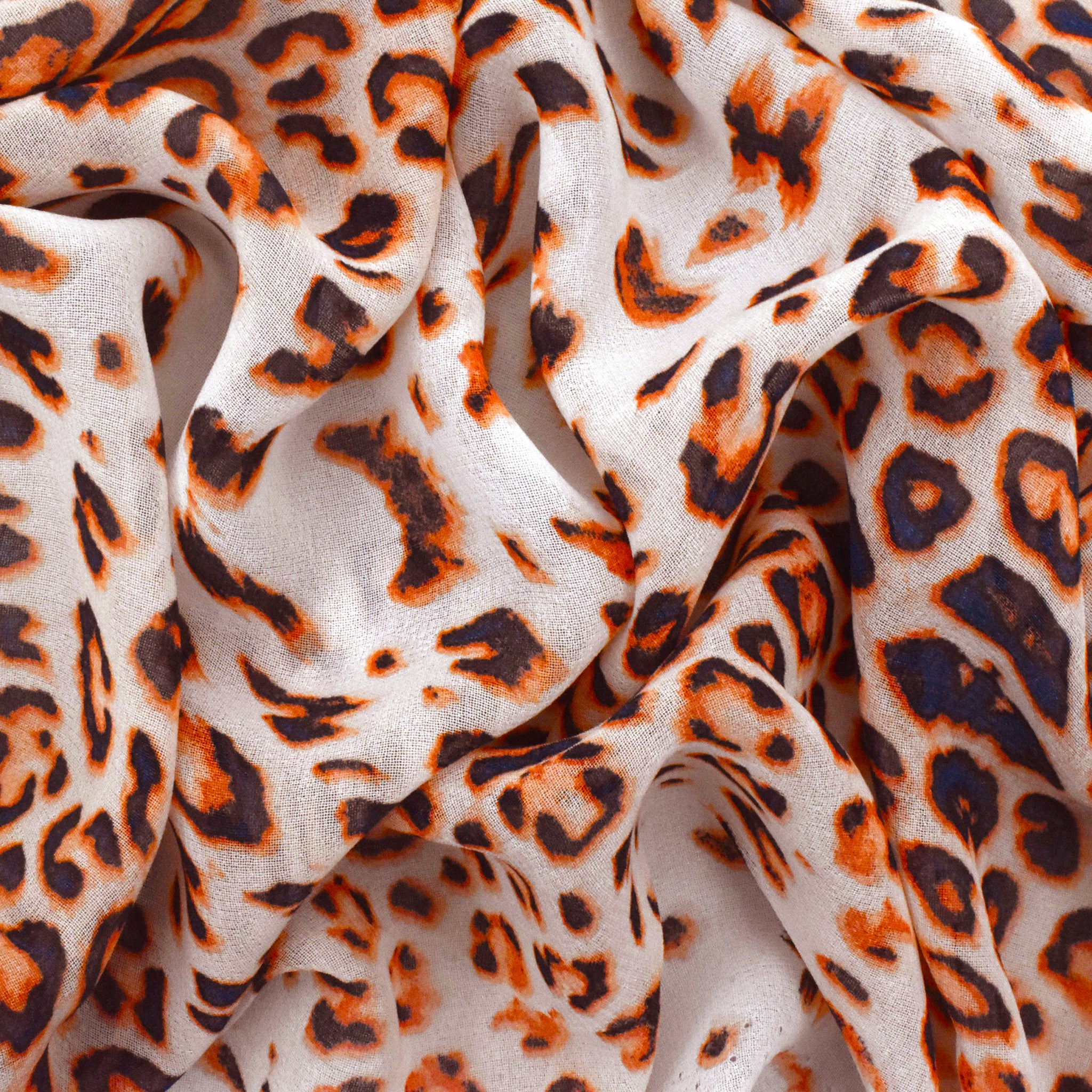 Burnt Orange-Navy-Ivory Leopard Printed Poly Chiffon Woven Fabric