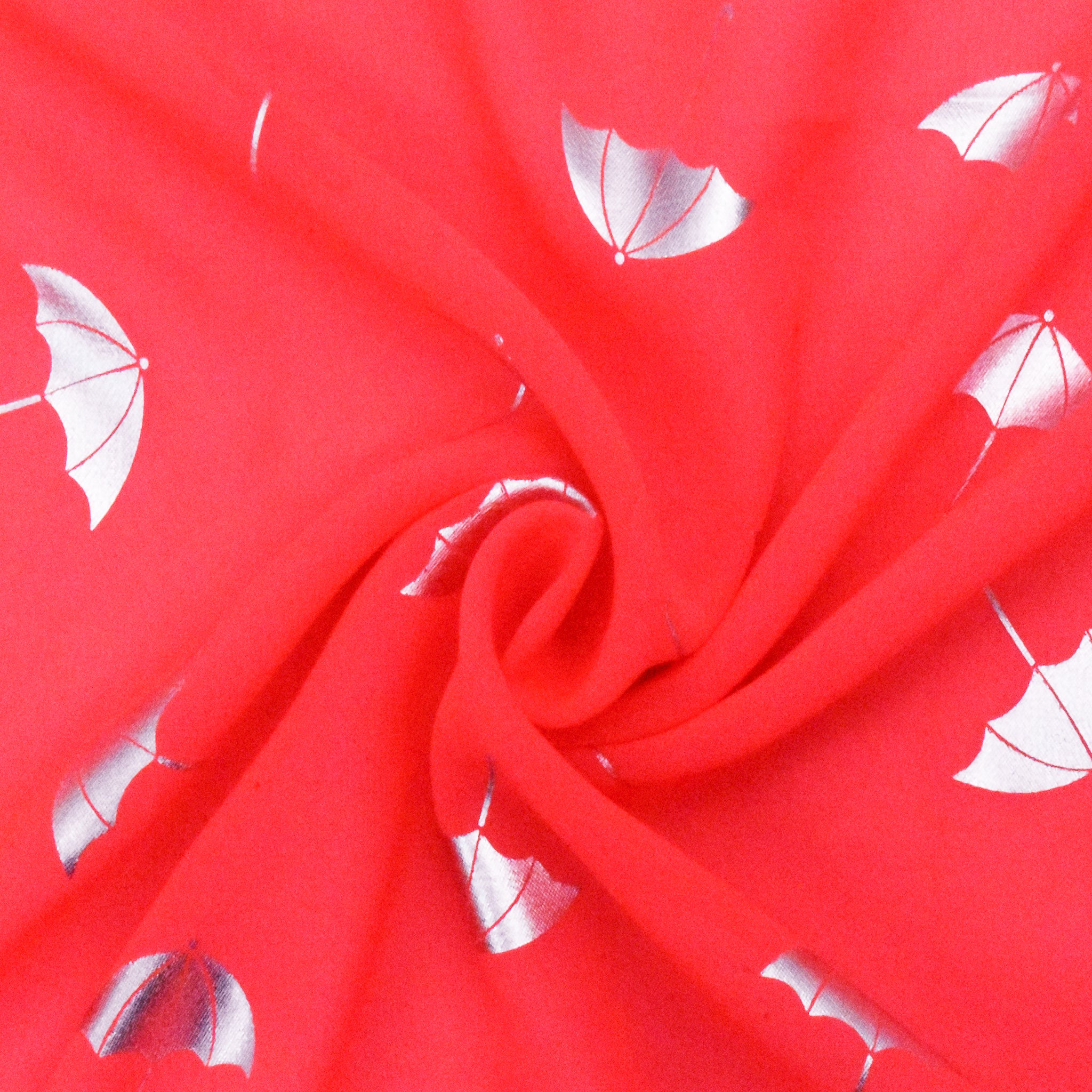 Caral Red-Silver Umbrella Foil Printed Polyester Chiffon Woven Fabric