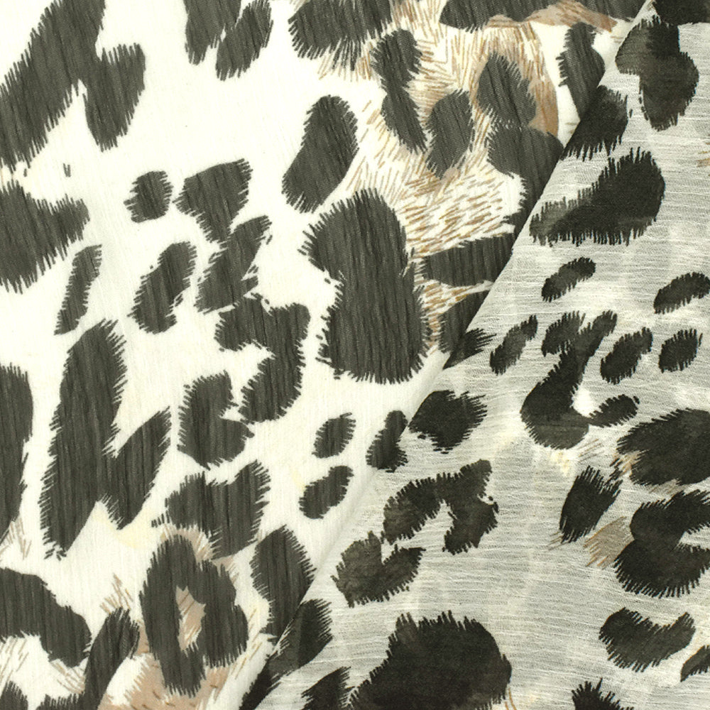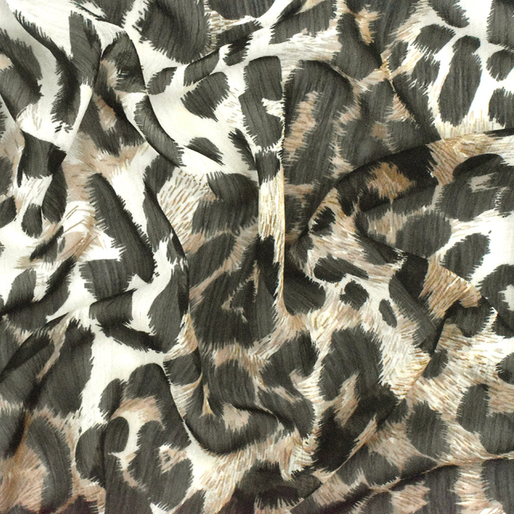 Cream Beige-Black-Multi Cheetah Printed Poly Yoryu Chiffon Woven Fabric