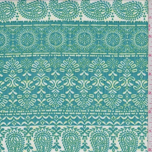 Dark Aqua/Yellow Deco Stripe Crinkled Chiffon Fabric