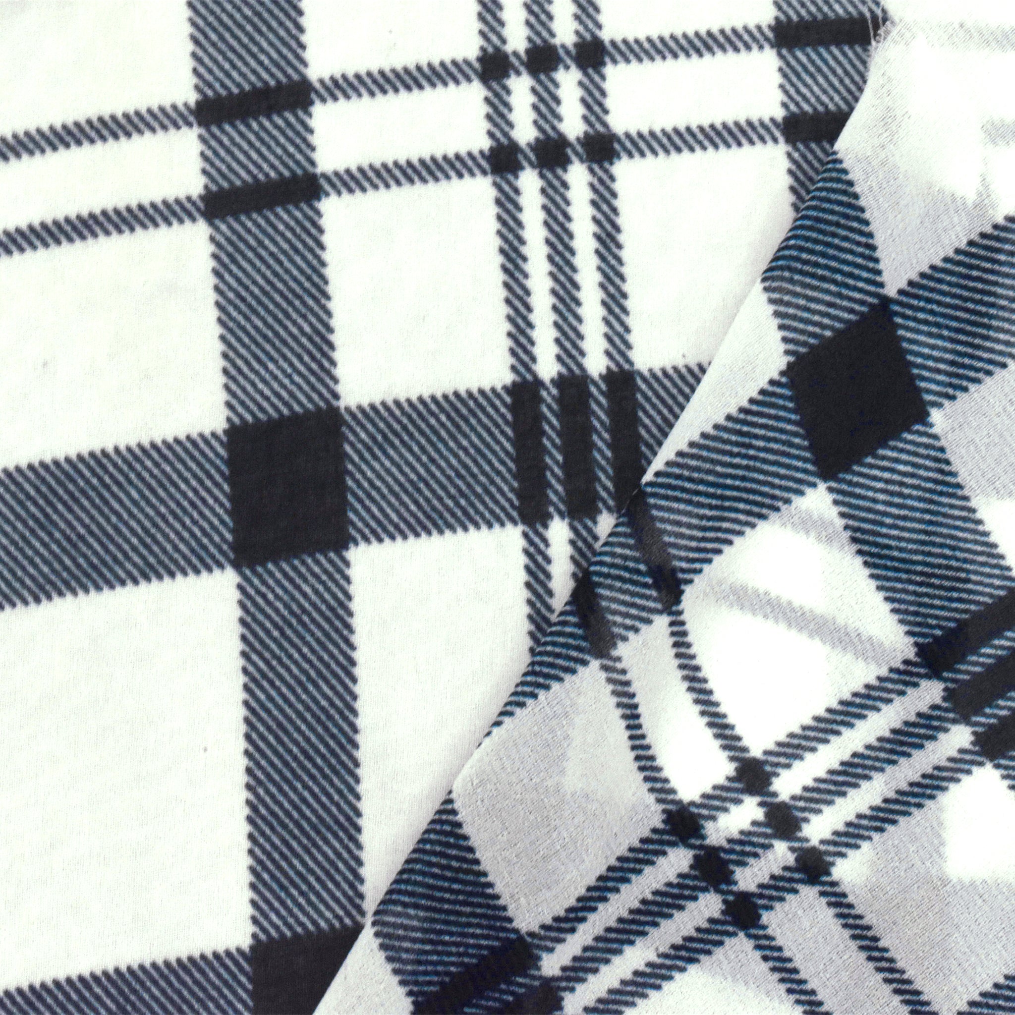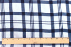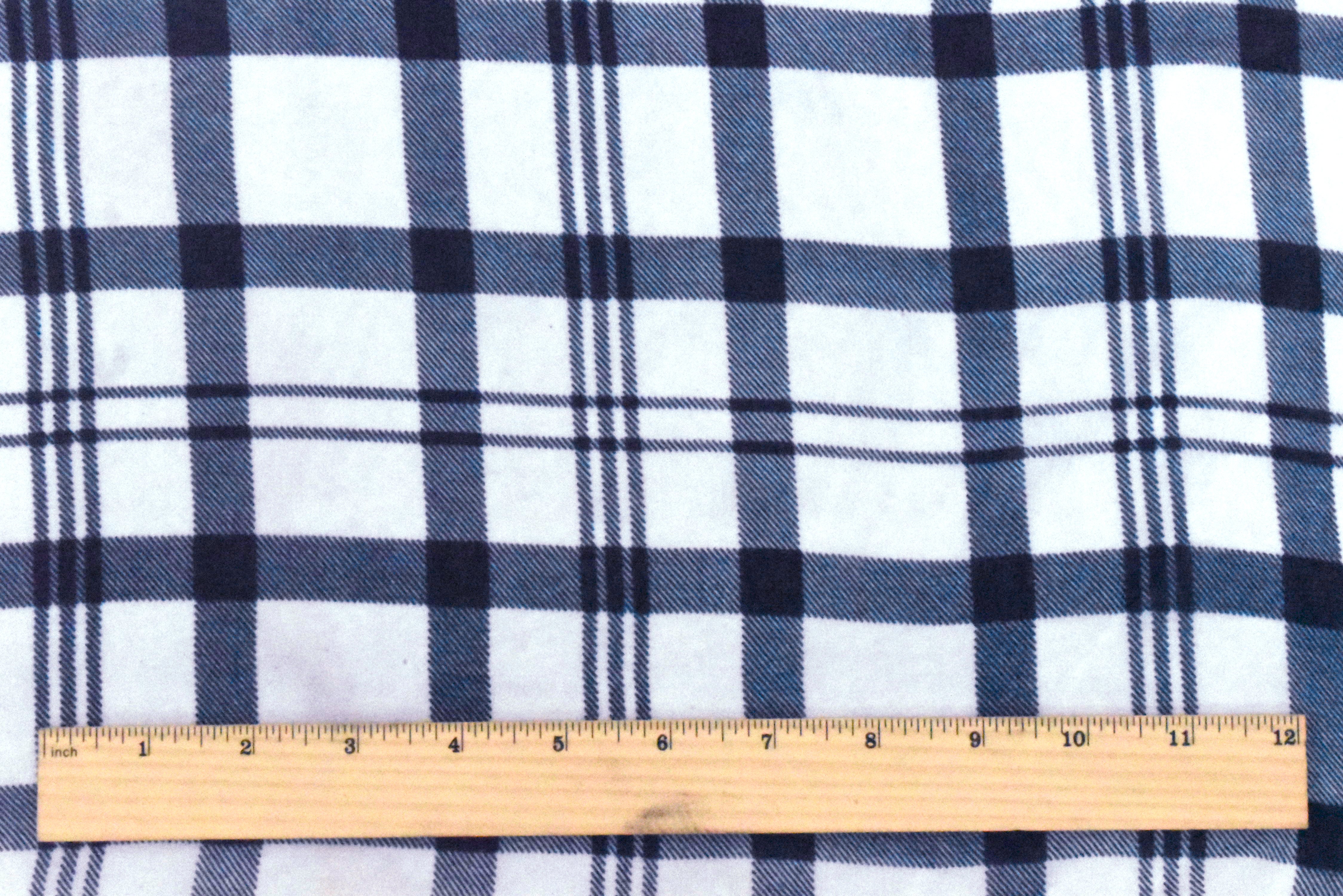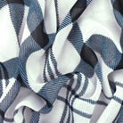 Dark Ink Blue-Ivory Plaid Printed Poly Chiffon Woven Fabric