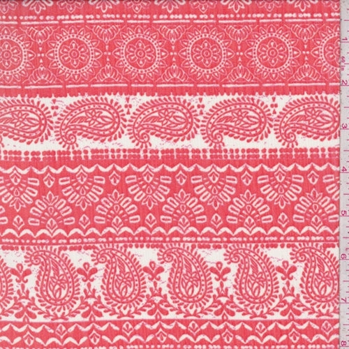 Dark Orange/Pink Deco Stripe Crinkled Chiffon Fabric