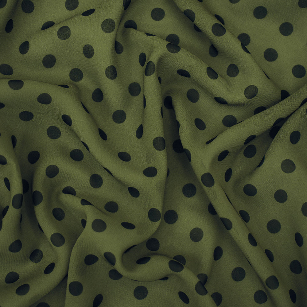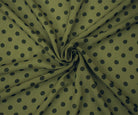 Green-Black Polka Dots Printed Poly Chiffon Woven Fabric