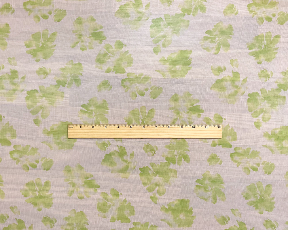 Green-Ivory Poly Floral Printed Crinkle Yoryu Chiffon Woven Fabric