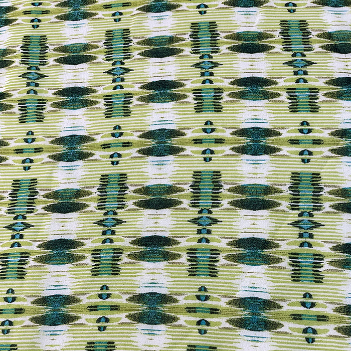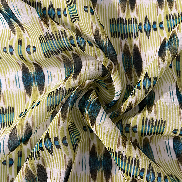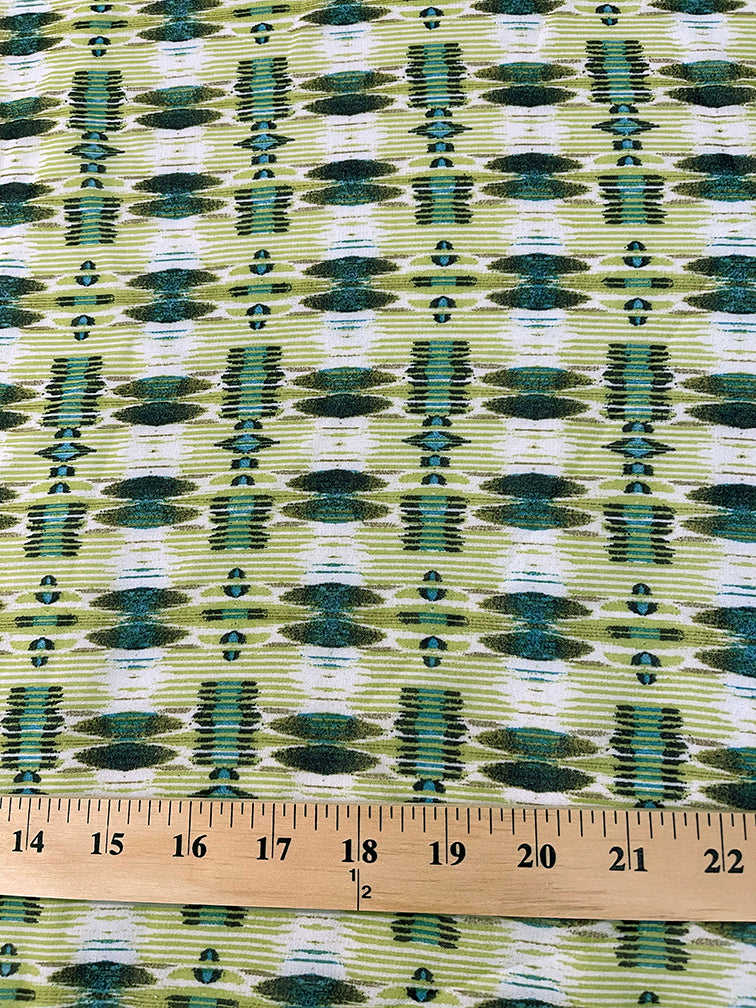 -Green, Brown, & Teal Print on White Chiffon Fabric
