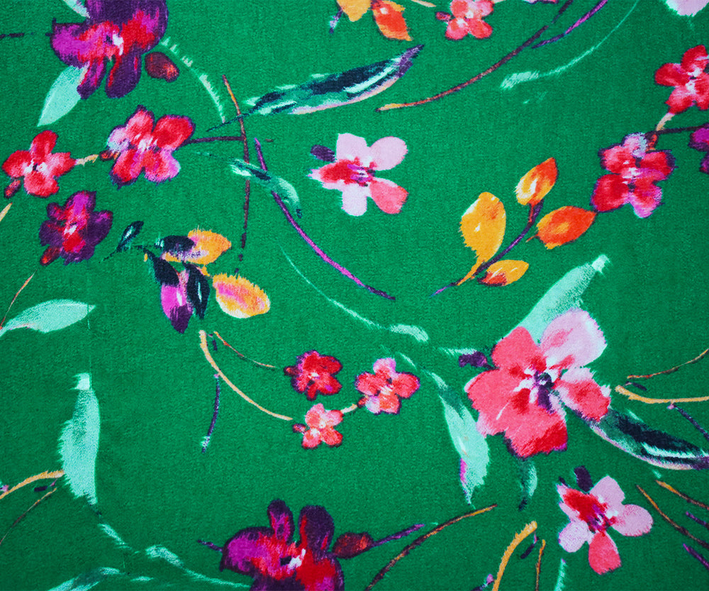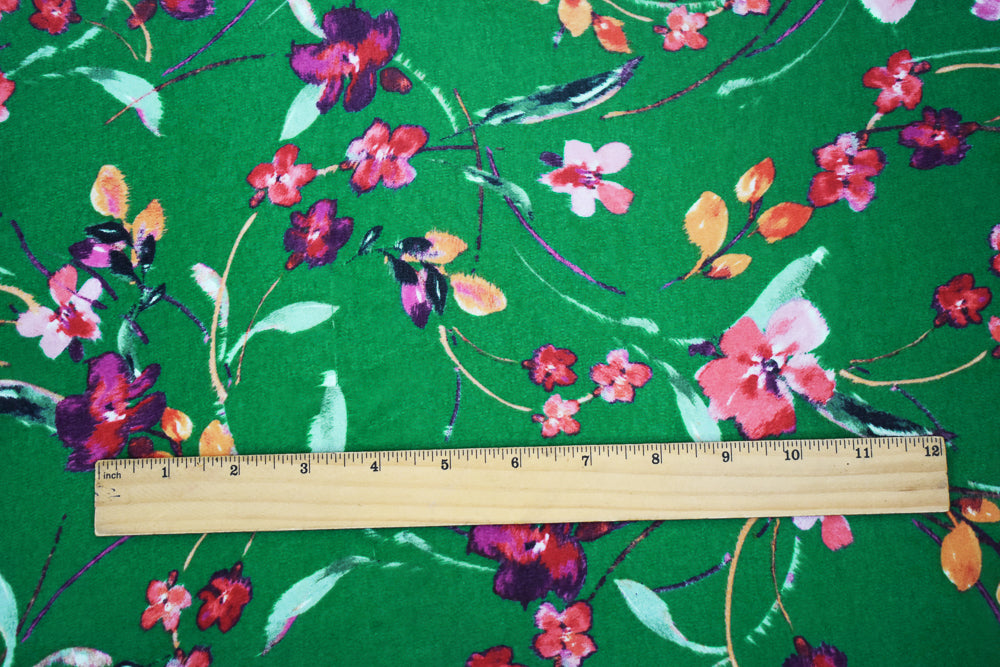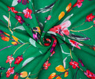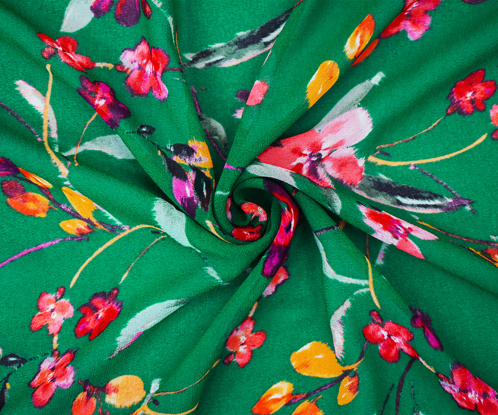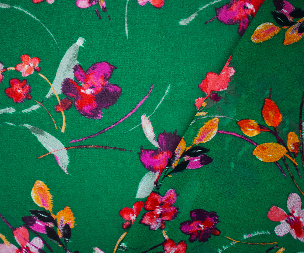 Green-Pink-Multi Floral Printed Pebble Chiffon Woven Fabric