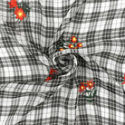 Ivory-Black-Multi Floral Embroidered Plaid Polyester Chiffon Woven Fabric