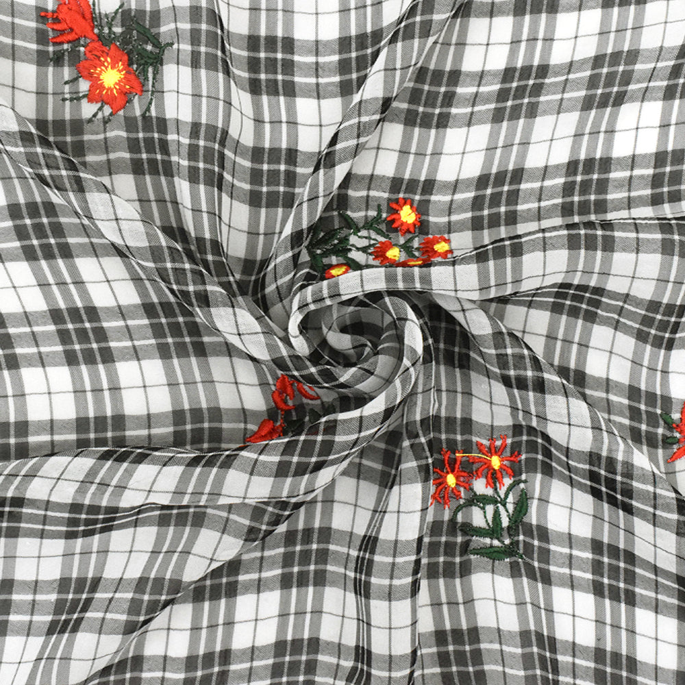 -100% polyester floral embroidered on a plaid pattern chiffon woven fabric