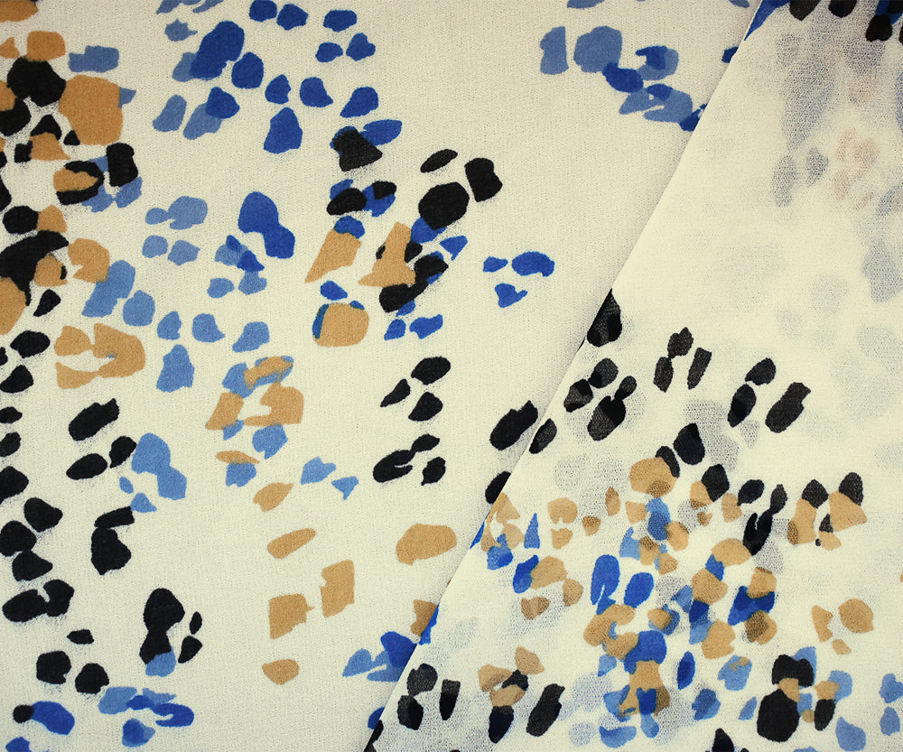 Ivory-Blue-Multi Abstract Spots Printed Poly Chiffon Woven Fabric