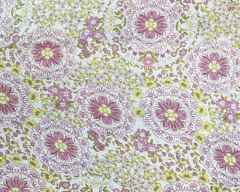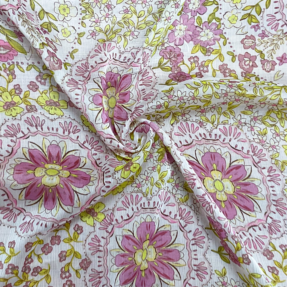 Ivory-Green-Multi Poly Floral Printed Crinkle Yoryu Chiffon Woven Fabric
