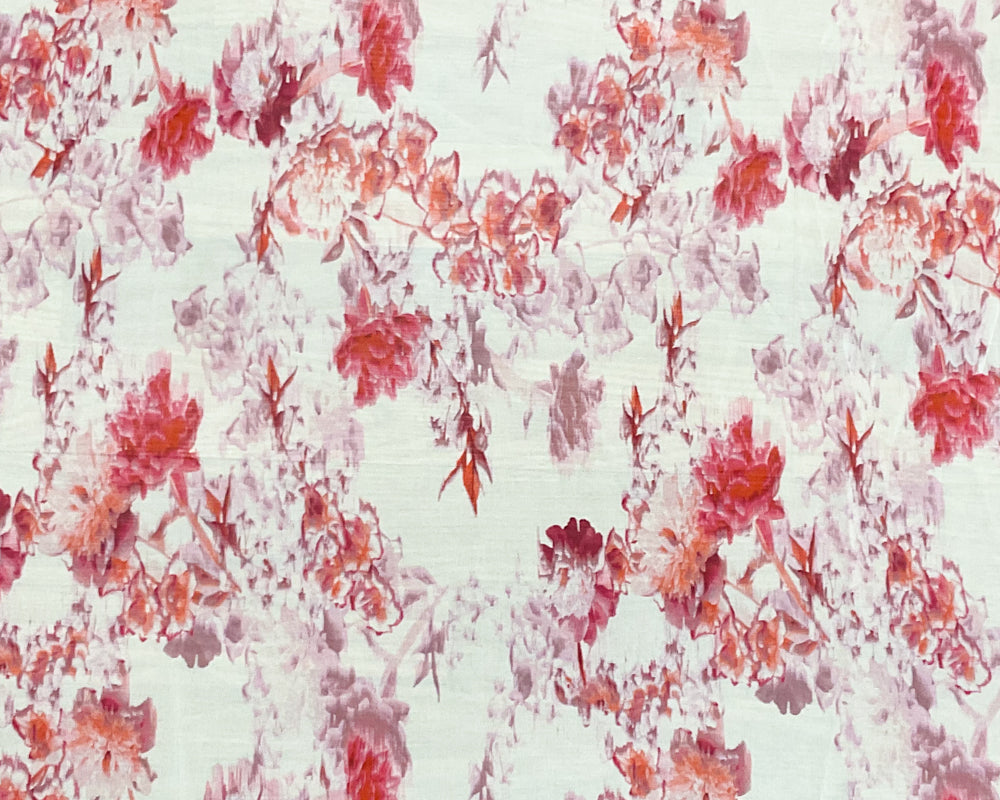 -Ivory-Pink-Multi Poly Floral Printed Chiffon Woven Fabric