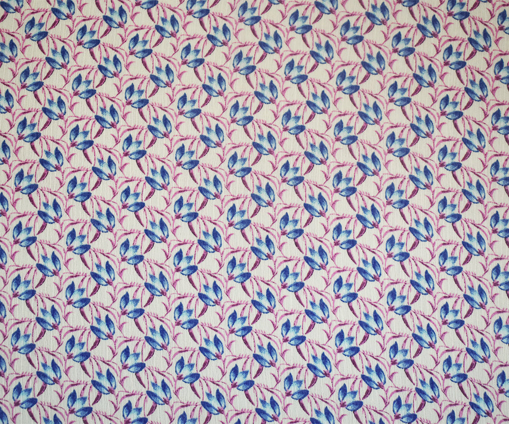 Ivory-Purple-Blue Floral Printed Poly Yoryu Chiffon Woven Fabric
