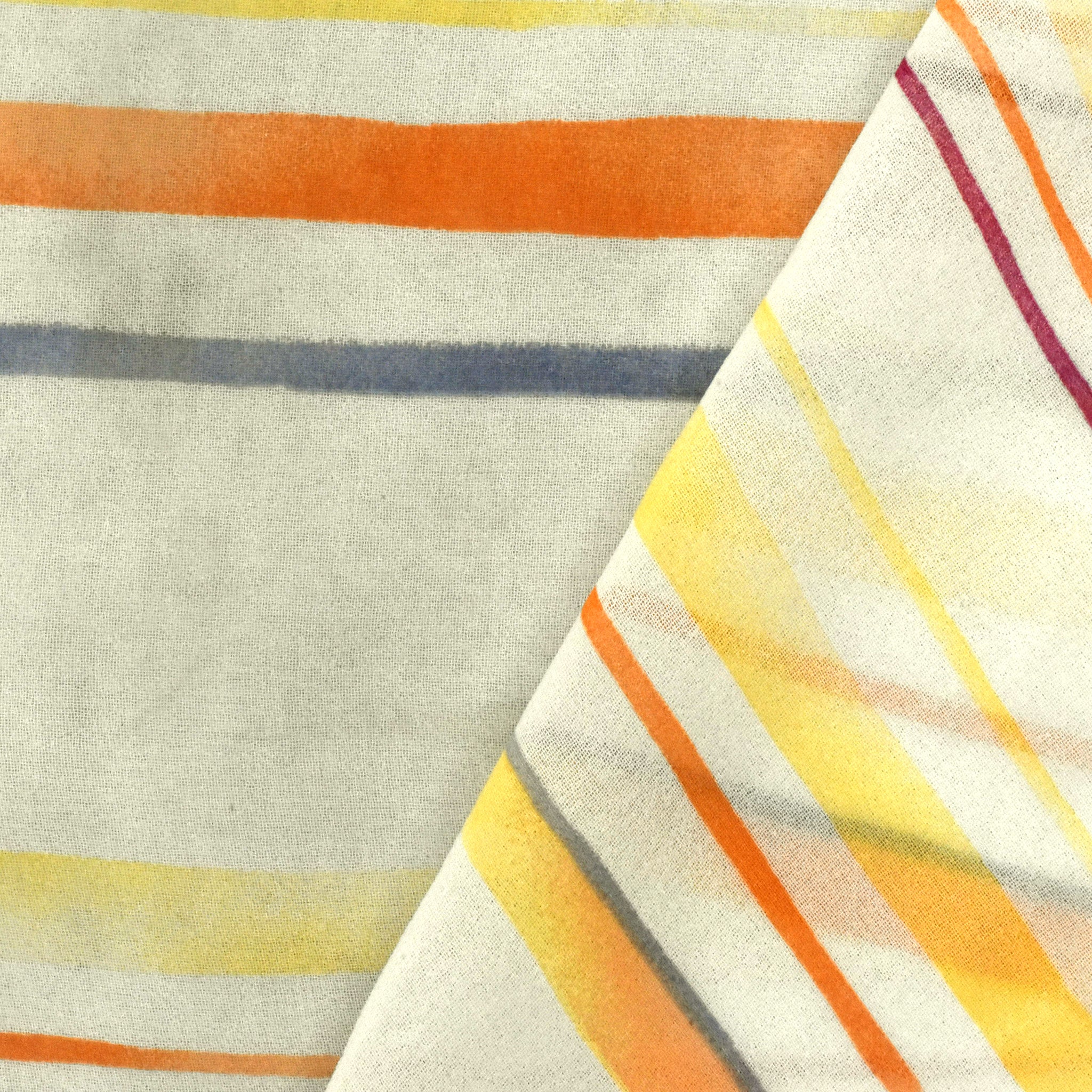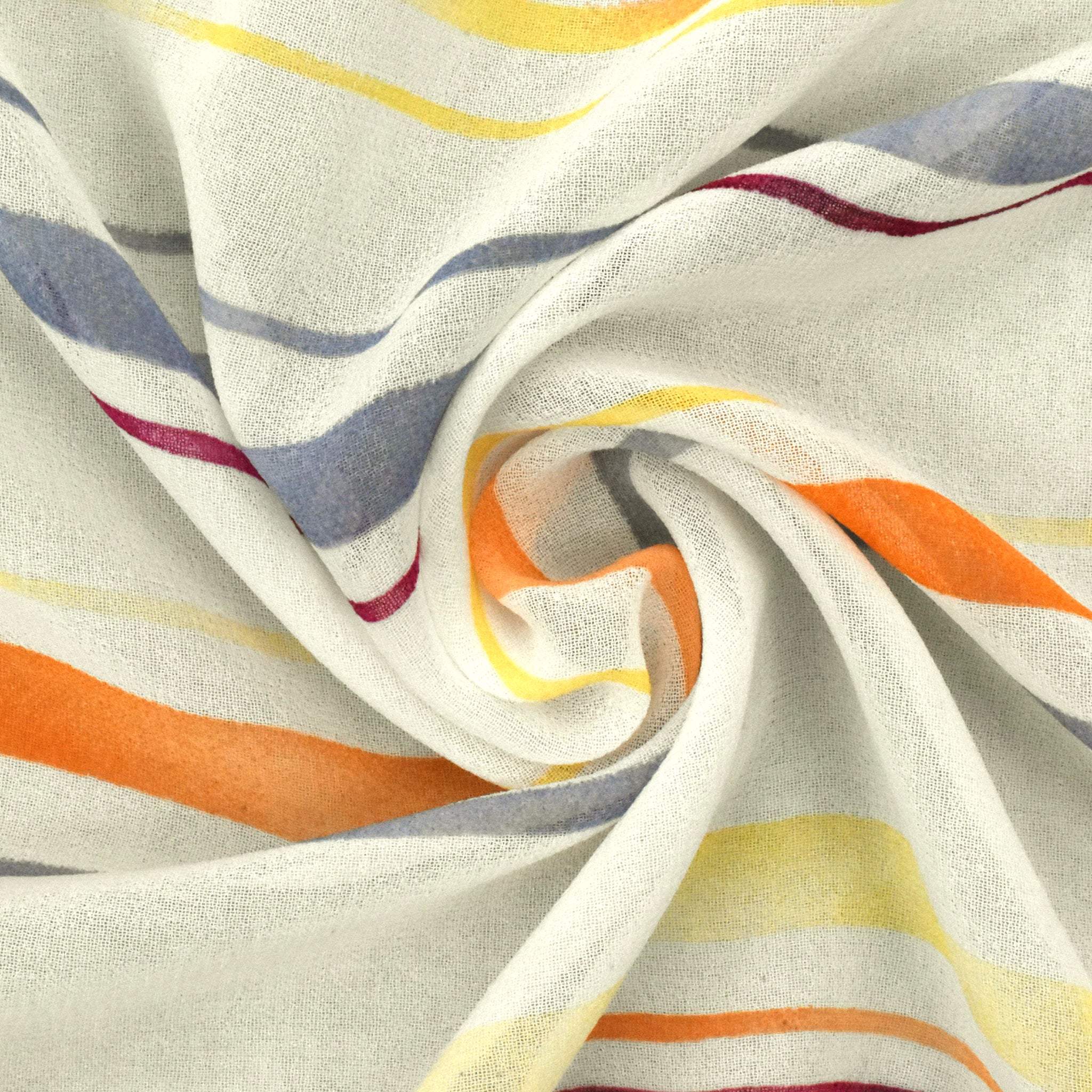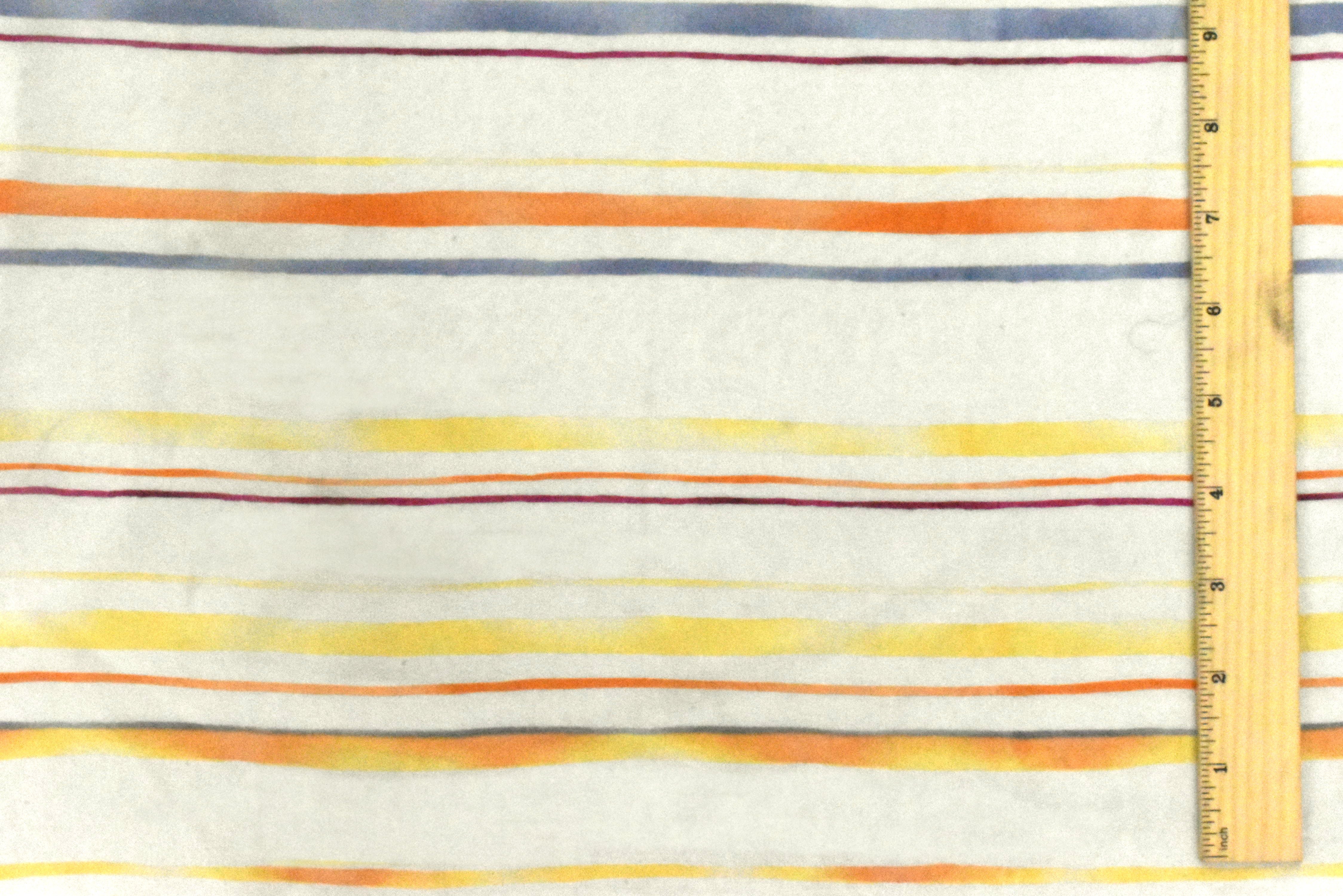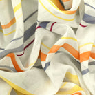 Ivory-Yellow-Multi Stripe Printed Poly Chiffon Woven Fabric