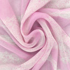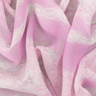 Light Fairy Pink-White Lace Stripe Printed Poly Chiffon Woven Fabric