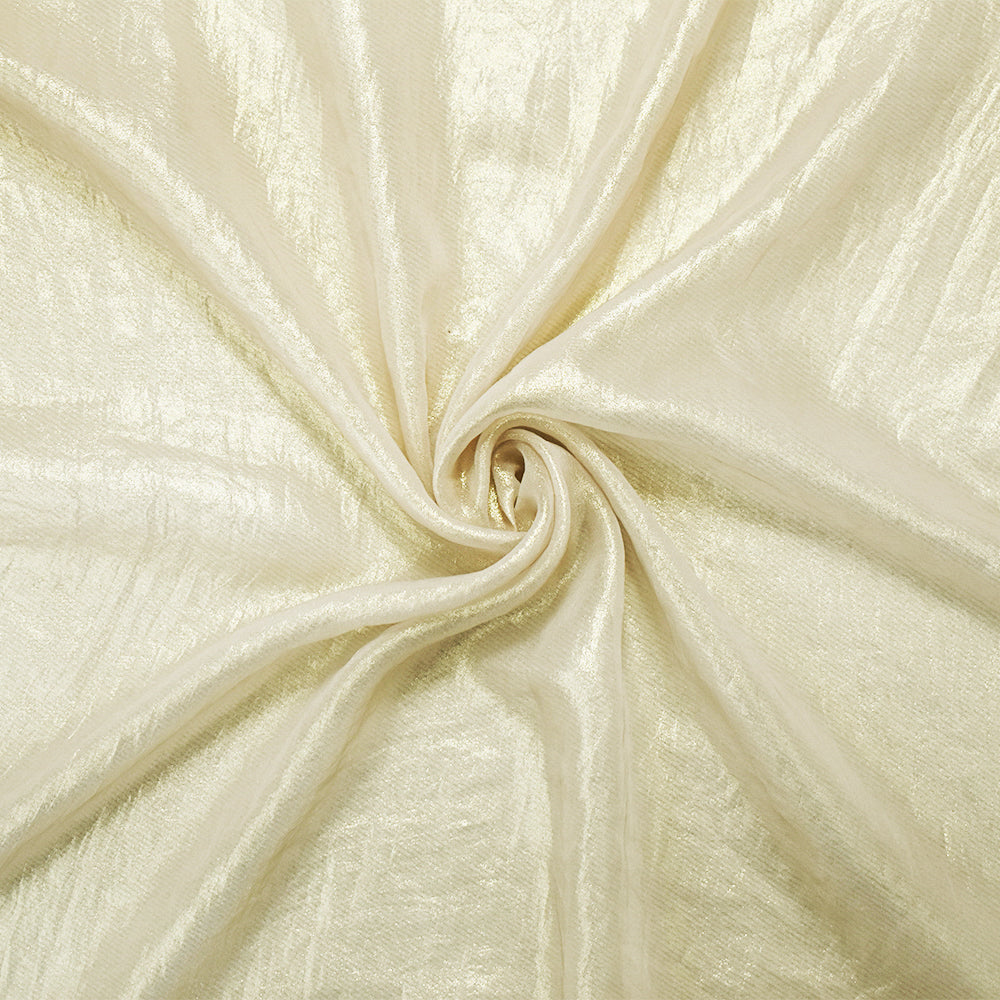 -100% Polyester sheer chiffon woven fabric overprinted with a translucent gold shimmer