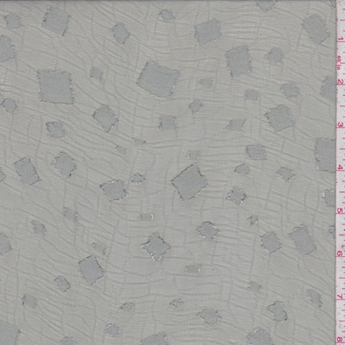 -Crinkled polyester chiffon with a tone-on-tone rayon jacquard diamond design outlined with clipped yarns. Faint tone-on-tone free-flowing jacquard lines in the background