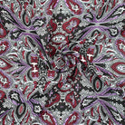 Maroon Red-Purple-Multi Paisley Baroque Printed Poly Chiffon Woven Fabric