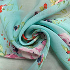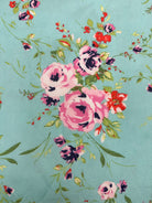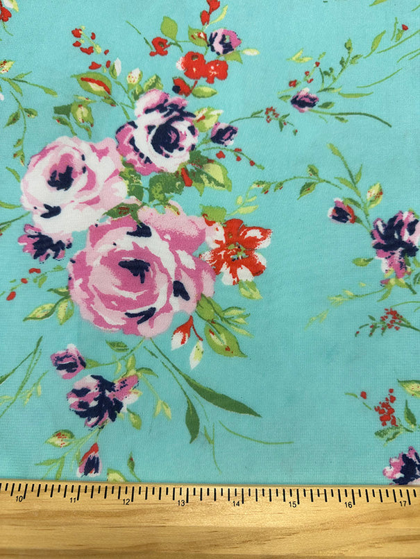 -Pink, Navy Blue, Orange, & Green Floral Print on Mint Green Sheer Poly Chiffon Fabric