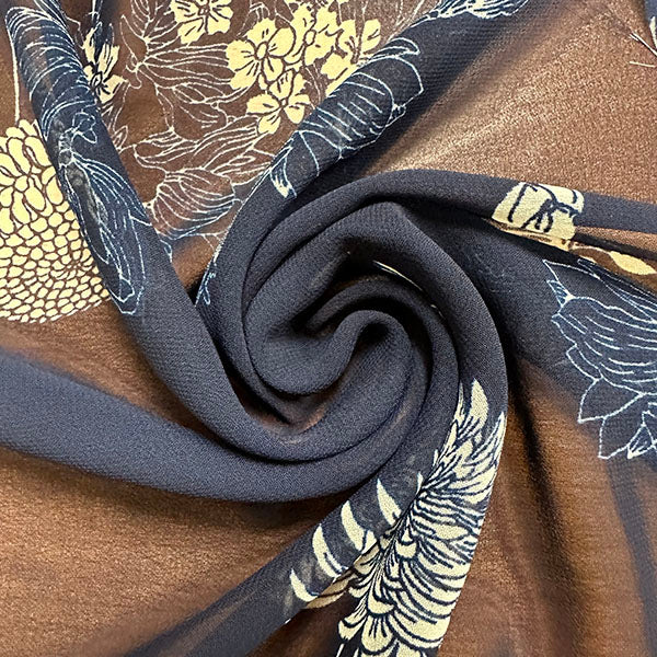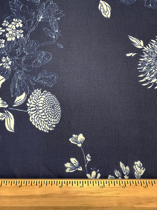 Navy Blue and White Floral Print Poly Chiffon Fabric
