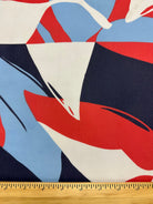 -Navy Blue, Red, White, and Light Blue Leaf Print Sheer Poly Chiffon Fabric