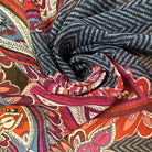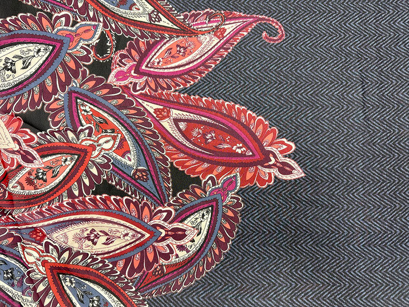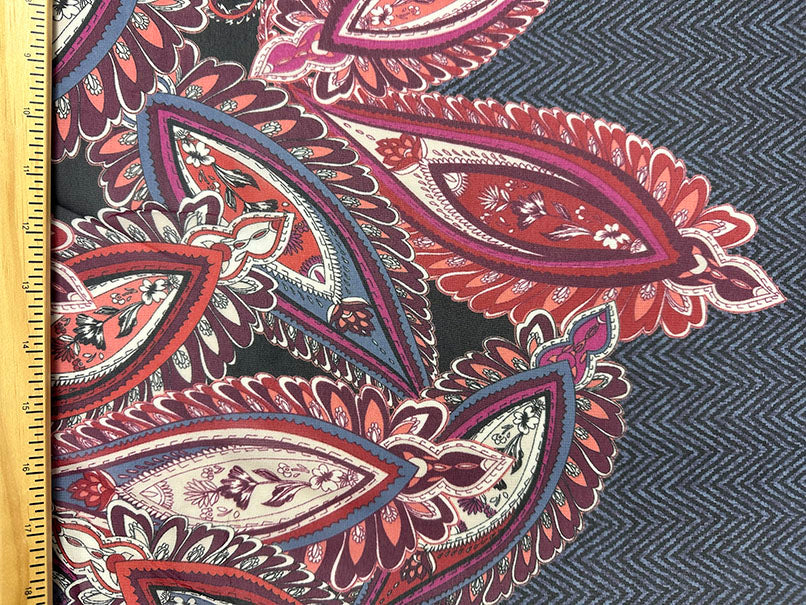 Navy Multi Herringbone Paisley Poly Border Print Chiffon Fabric