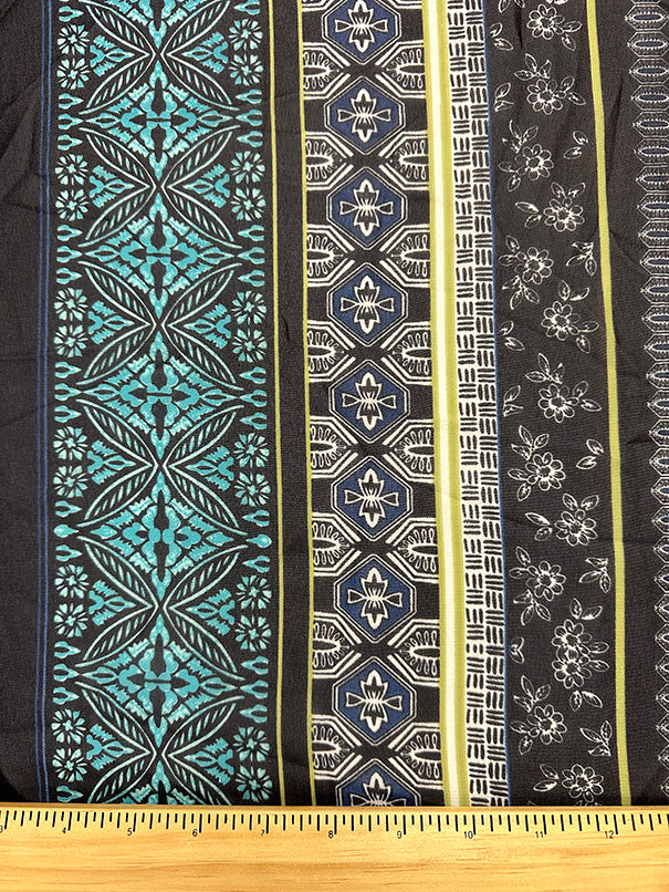 -Navy Blue, Teal, White, & Lime Green Multi Stripe Poly Print Sheer Chiffon Fabric