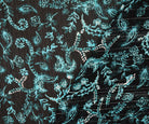 Navy-Silver-Multi Vine Printed Poly Yoryu Metallic Stripe Chiffon Fabric